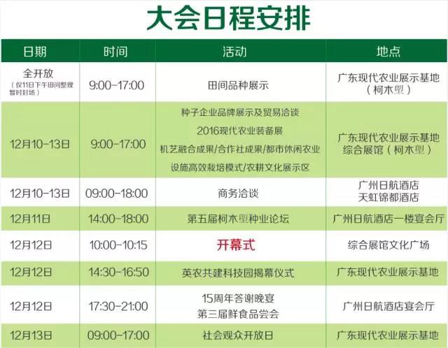 每一年的广东种博会,皆有200多家种子企业在展馆展示品牌形象和贸易洽谈,来自300多家单位近6000个新优品种在田间展示,吸引全球各地40000多名专业观众观展。12月11-13日,2016年广东种博会将再度于柯木塱开门迎客,其中12月11-12日为专业观众日,13日为社会公众开放日。你准备好了吗? 每一年的广东种博会,皆有200多家种子...