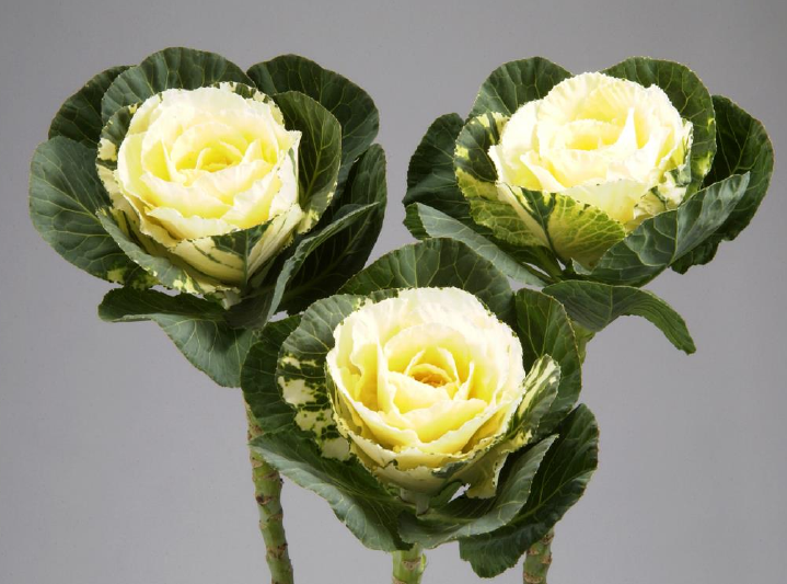 - 圆叶,淡黄白色品种,芯部有少许橙红色,外叶为亮绿色。