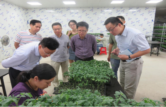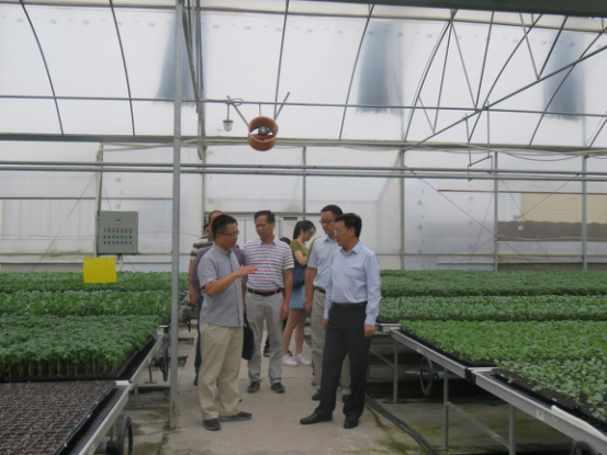 图为周副司长一行在了解番茄嫁接苗生产情况