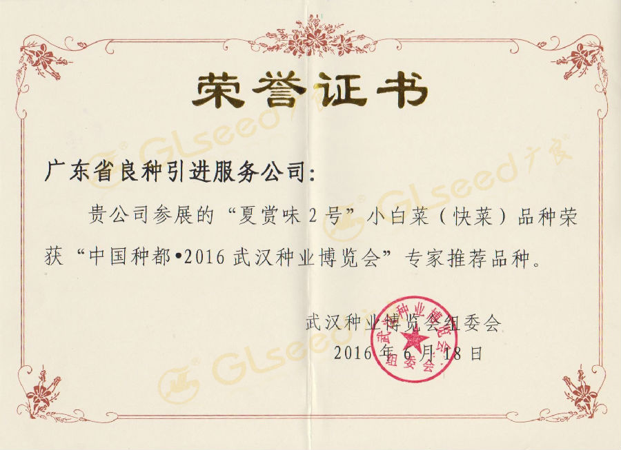 其中,我司的“广府好味”小白菜、“夏赏味2号”小白菜在众多参展品种中脱颖而出,获得博览会“专家推荐品种”的荣誉!