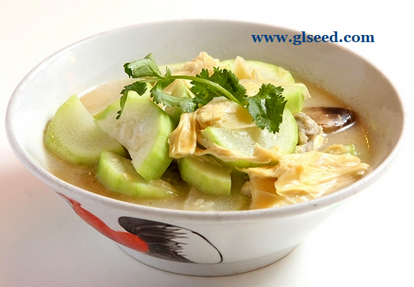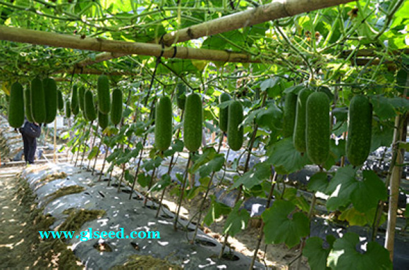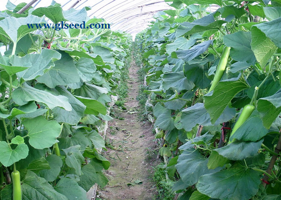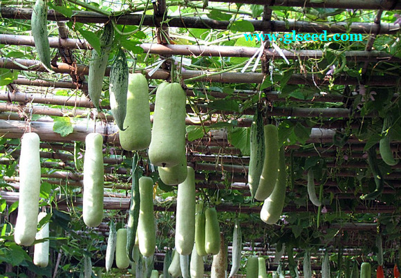 按上市期安排播种期,一般4月-5月初和10月中下旬至12月是大城市蒲瓜脱销季节,由此根据所播品种特性来反推播种时间,也可根据上茬蒲瓜采收时间适当提前或推迟,但一般不要超过10天。广州春季栽培蒲瓜一般于12月底至翌年1月播种;秋季栽培于7-8月播种。春季种植要防寒育苗,播种前将种子晒1-2天,播种时要浸种催芽,用50℃-55℃温水烫种,瓠瓜种皮较厚,不易透水,浸种时间随品种不同而定,一般需浸种5-6小时,催芽温度要高,一般在31℃-35℃。当年收获的休眠种子应用1500mg/L的赤霉素溶液浸种8小时。当种子破口露白时准备播种,早春育苗一孔播1-2颗,播种结束后用细营养土覆盖1 cm,并淋透水,覆盖地膜,搭0.5m高的拱棚以保温保湿。当苗大部分露头后,可根据气温变化情况酌情揭开覆盖物防止高脚苗。秋植可集中育苗也可直播,视具体条件而定。