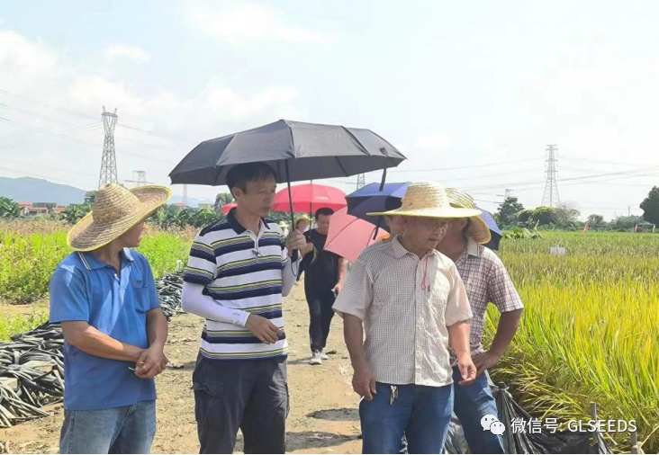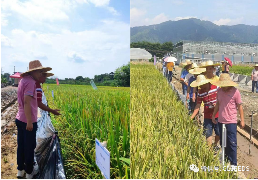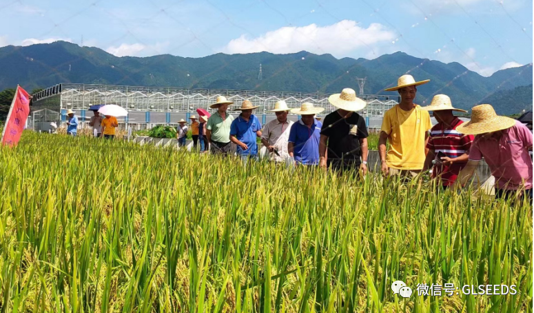 参会人员在广良三水农场场长程涛的带领下,深入田间地头了解水稻各品种的特征属性,大家相互交流,详细了解水稻各品种的特性和种植情况。本次活动集中展示了40多个品种,其中广良香32、广良香珍、广良香占、广良147号这四个品种深受农户的青睐。通过此次展示示范,可以从中筛选适宜在大塘镇种植的优质高产、多抗耐逆、适应性广的优质水稻新品种,带动大塘镇水稻良种的推广。